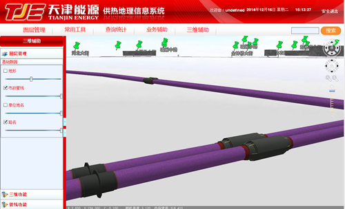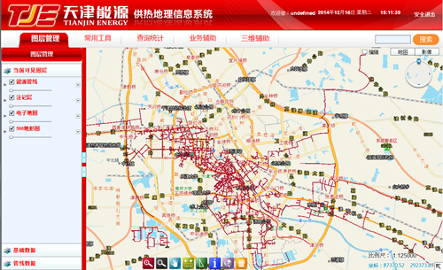 天津能源集團承擔著天津市40%的供熱任務,為了能夠有效的整合資源,合理高效開展各項工作,提高整體運行調度水平,依托現(xiàn)有的GIS平臺,建設B/S架構的“供熱地理信息管理調度系統(tǒng)”,通過該項目建設使熱網管理實現(xiàn)“數(shù)據(jù)管理-熱網運行-熱網維護”主體功能三位一體管理模式,面向多角色用戶提供相應不同權限服務,靈活應對運營中面臨的各項任務,提高整體運維管理和服務水平。