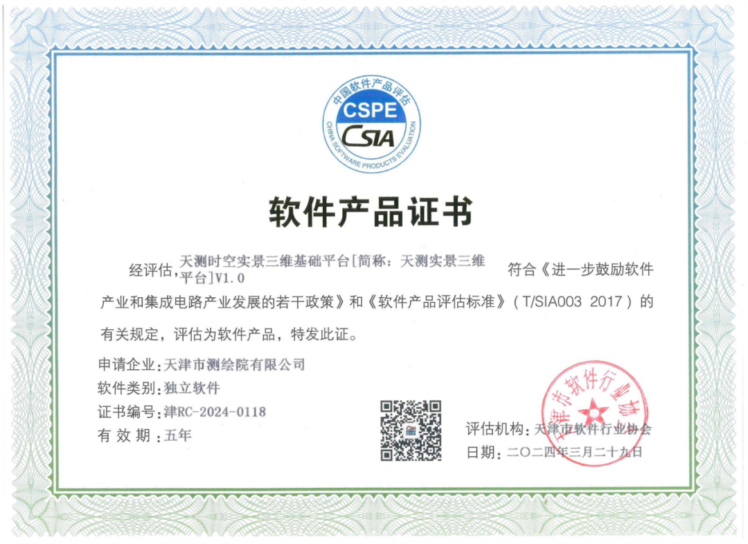 天津測(cè)繪院自主研發(fā)成果獲軟件產(chǎn)品認(rèn)證