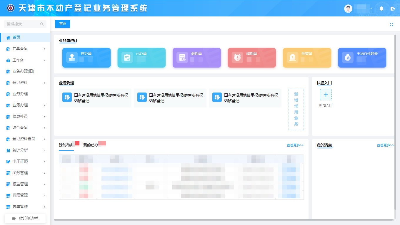 天津市不動(dòng)產(chǎn)登記業(yè)務(wù)管理系統(tǒng)界面