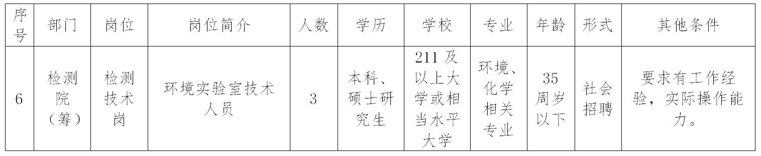 將原公告中的檢測技術(shù)崗(負(fù)責(zé)有機(jī)分析)、檢測技術(shù)崗(負(fù)責(zé)金屬分析)、檢測技術(shù)崗(負(fù)責(zé)理化分析)三個(gè)崗位進(jìn)行合并,調(diào)整為:
