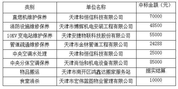 天津市測繪院有限公司2022年后勤維保類中標名單