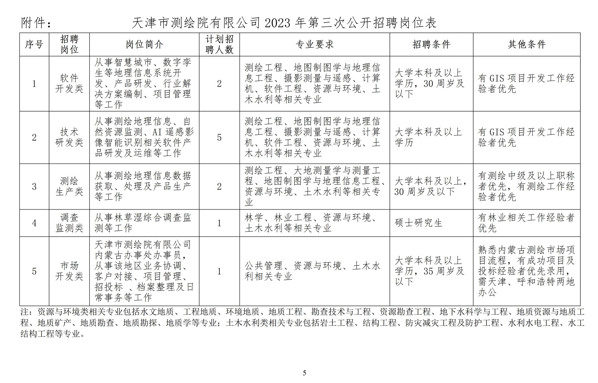 (六)具有工程勘察資質(zhì)單位8年及以上工作經(jīng)歷,且能提供2個及以上工程勘察業(yè)績證明材料者優(yōu)先錄用;具有資源與環(huán)境、土木水利類高級職稱且有測繪工作經(jīng)歷者優(yōu)先錄用;